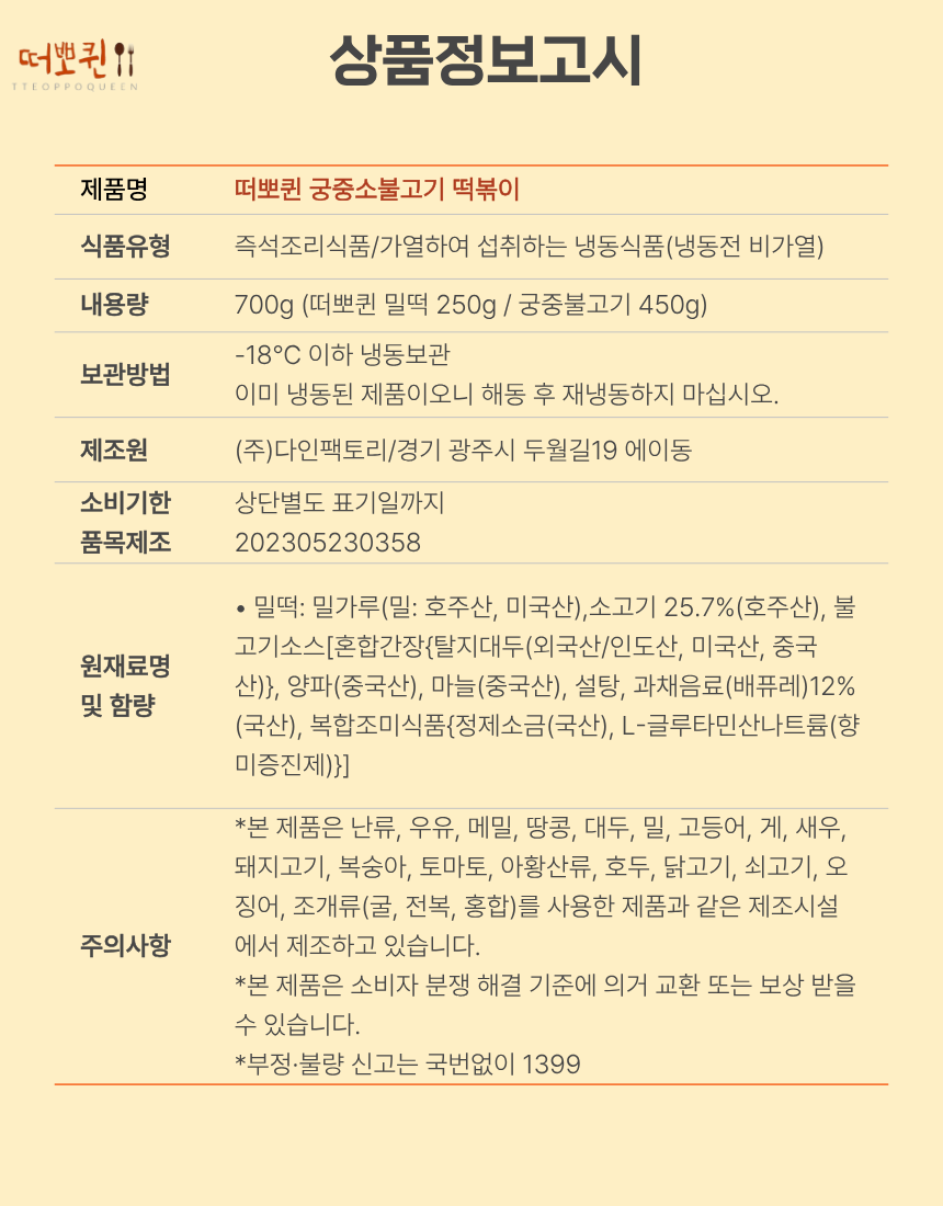 떠뽀퀸 궁중소불고기떡볶이
